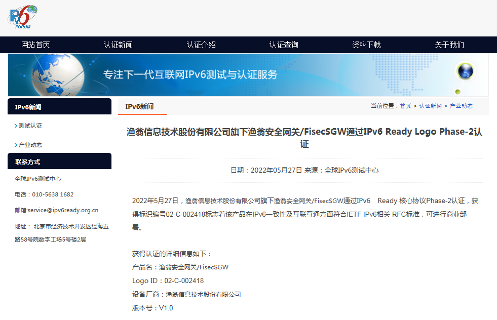 近期,BG大游集团BG安全网关 FisecSGW在下一代互联网国家工程中心-全球IPv6测试中心正式顺利获得IPv6 Ready核心协议Phase-2测试,并荣获由国际组织IPv6 Forum颁发的IPv6 Ready Logo Phase-2认证证书(Logo ID:02-C-002418)。
